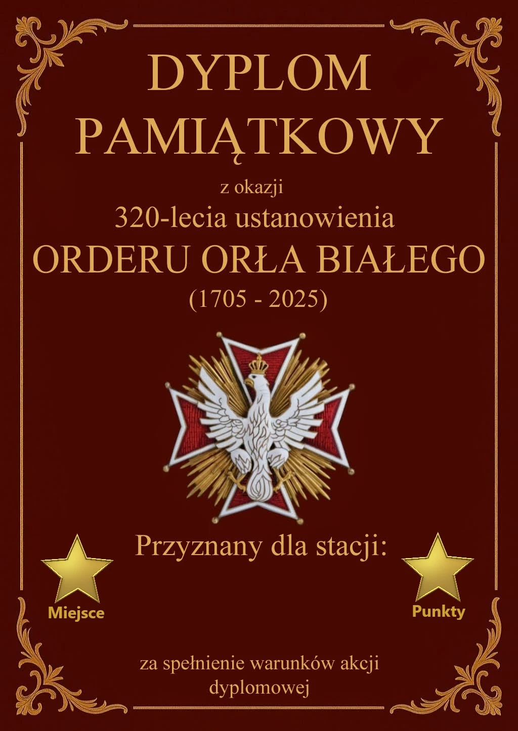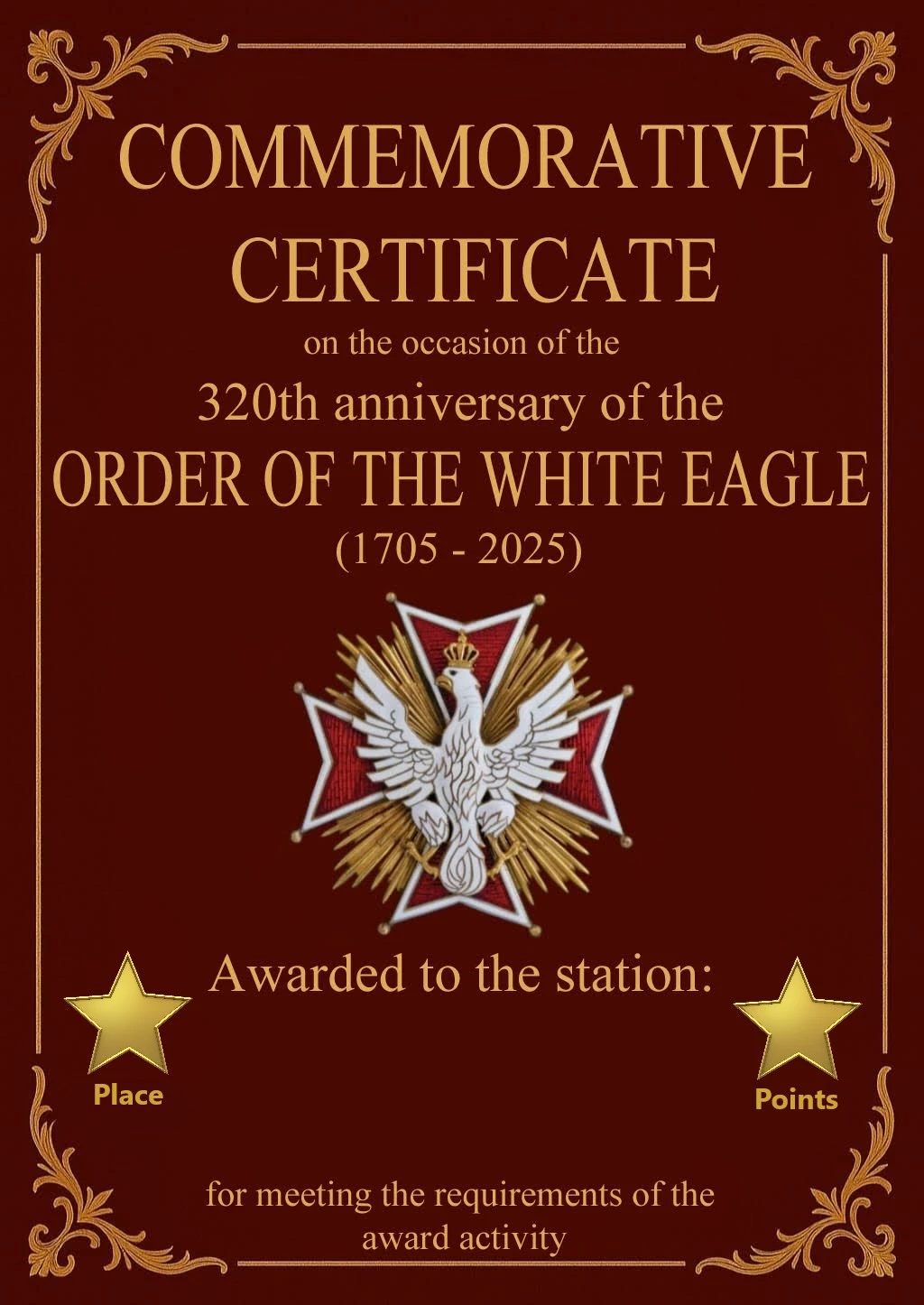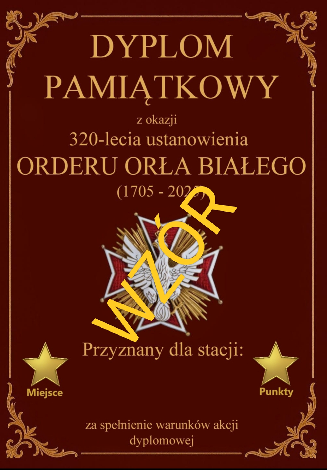 1. Uczczenie 320-lecia ustanowienia Orderu Orła Białego przez Augusta II Mocnego, które nastąpiło 1 listopada 1705 roku na zamku w Tykocinie.